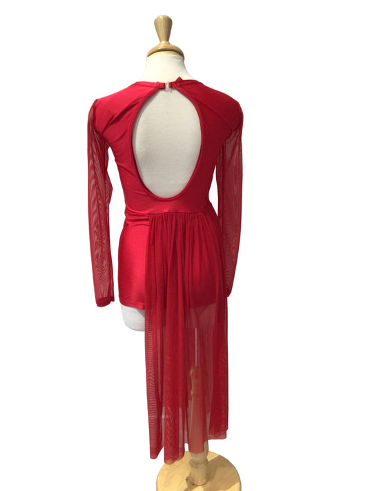 Red Biketard with Mesh Sleeves and Half Skirt