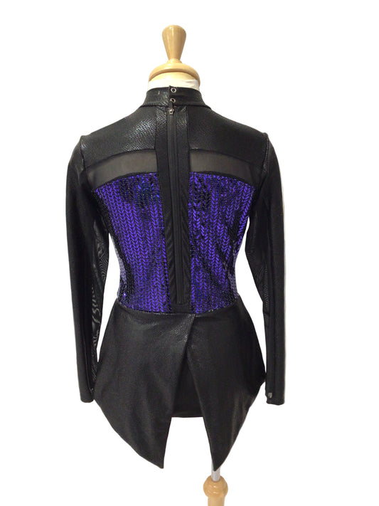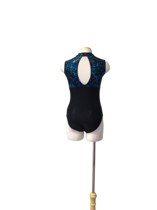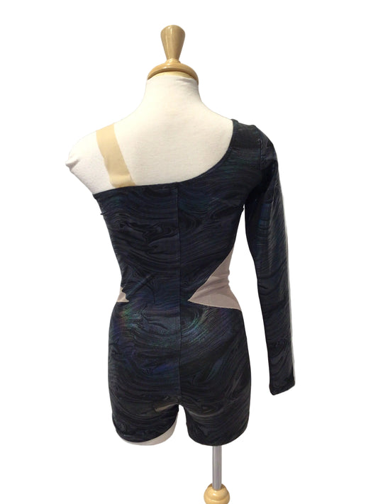 Black and Blue Sequin Biketard with One Sleeve