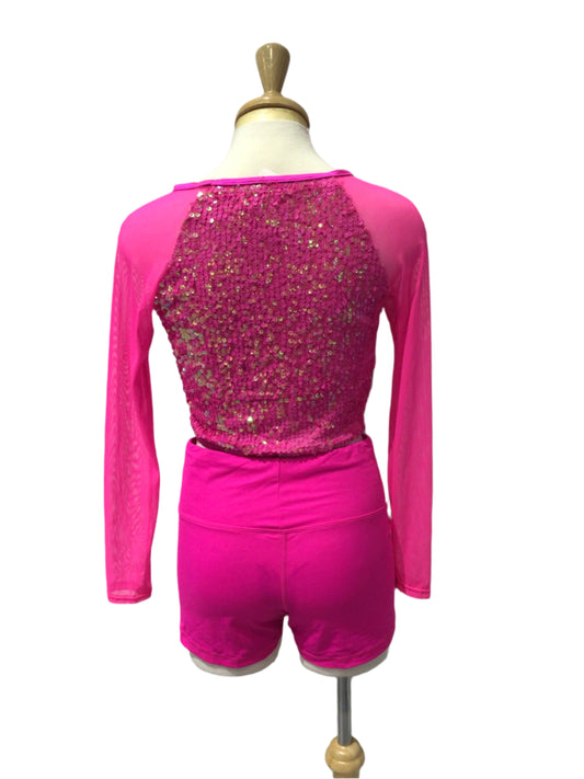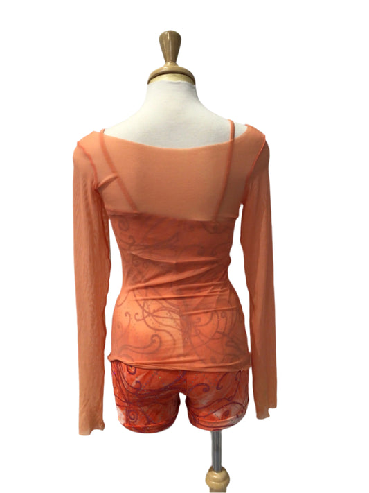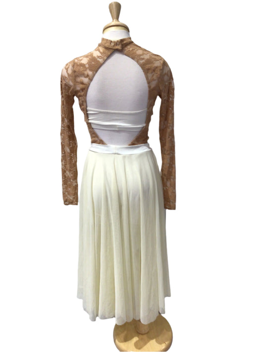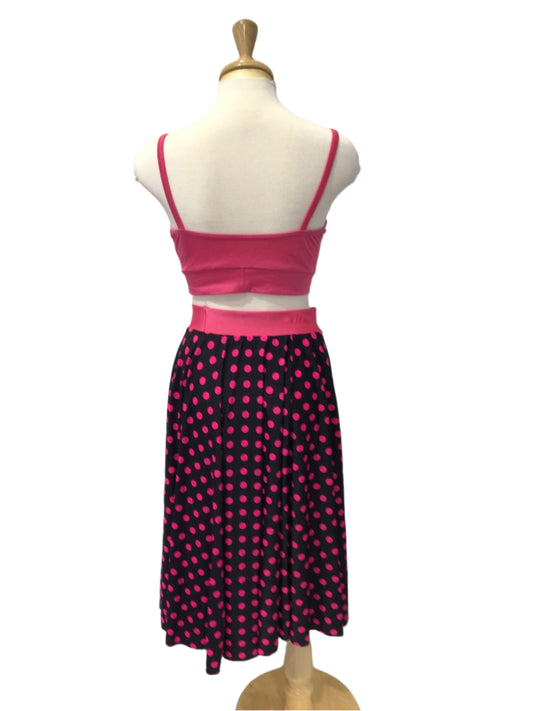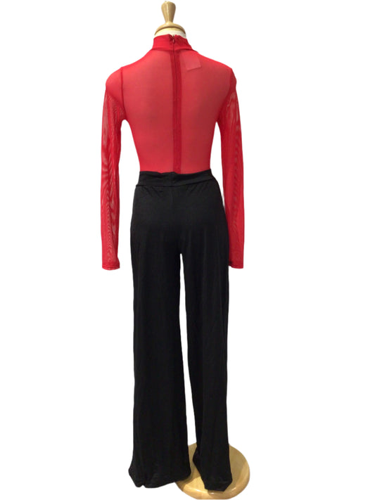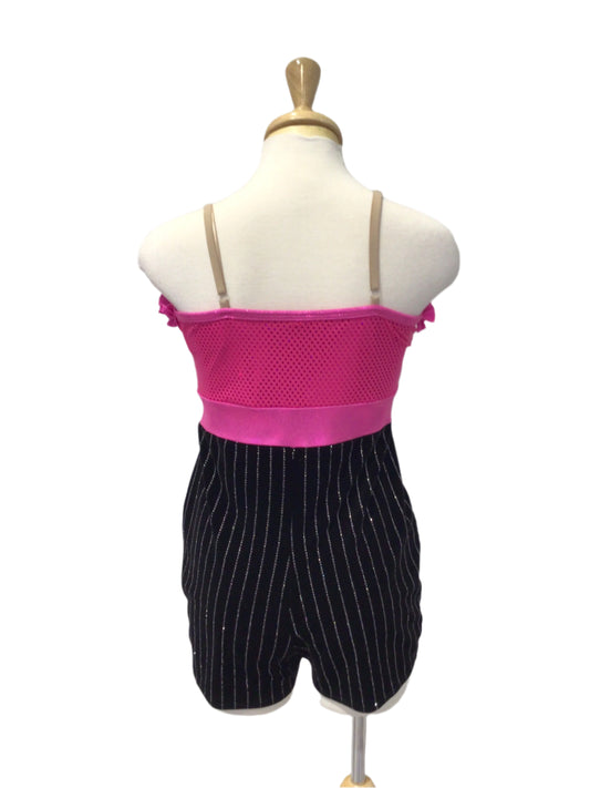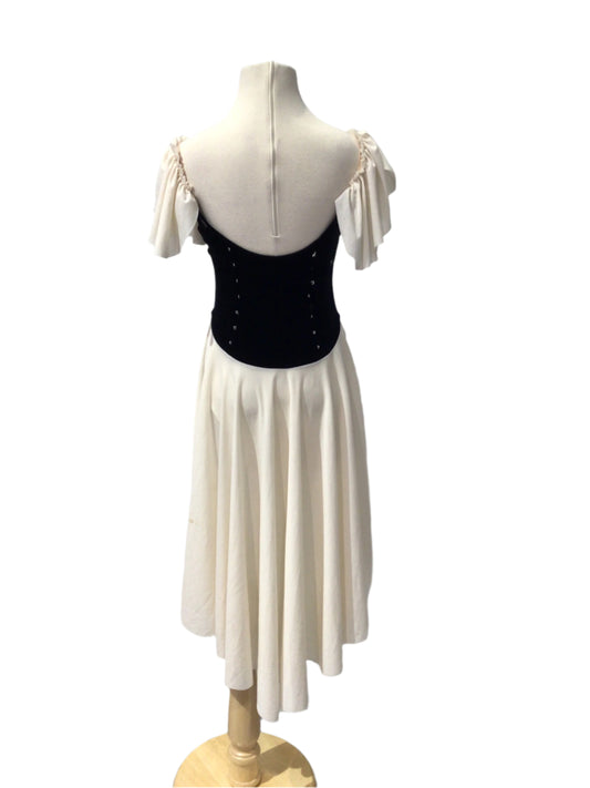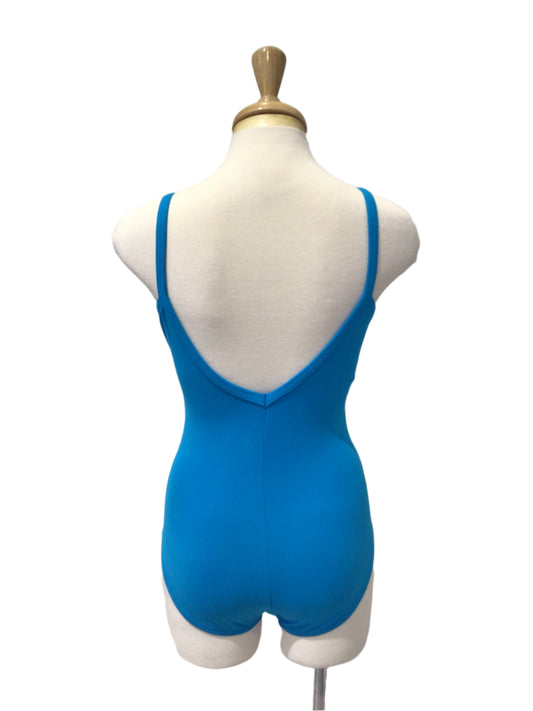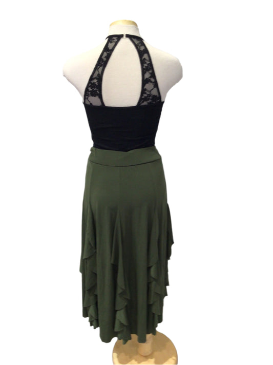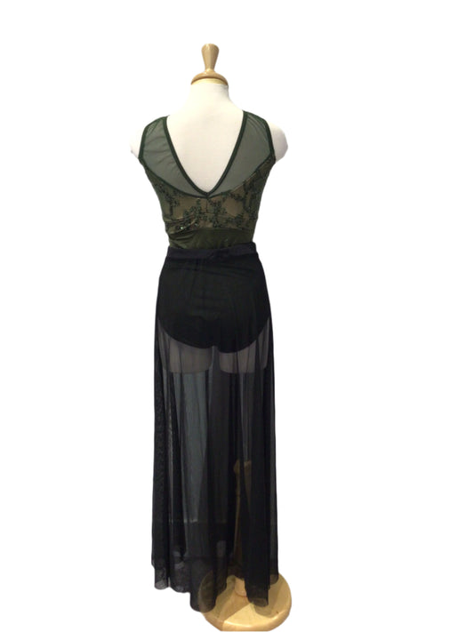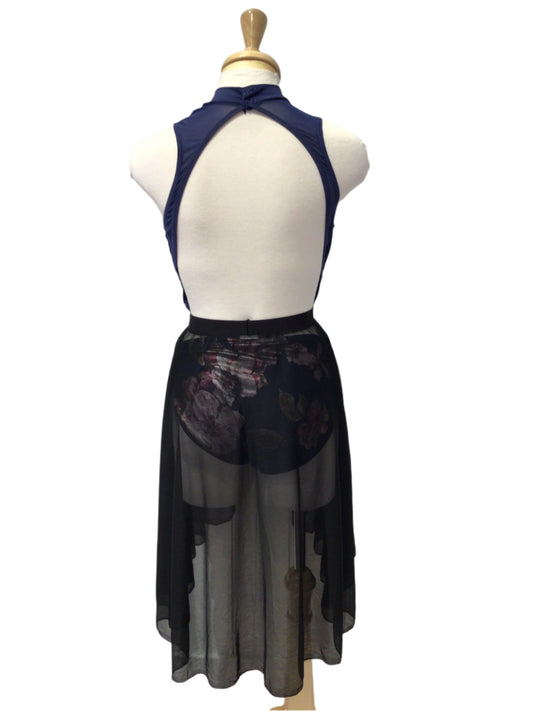 Blue Flower Bodysuit with Black Skirt with Open Front