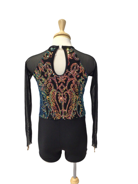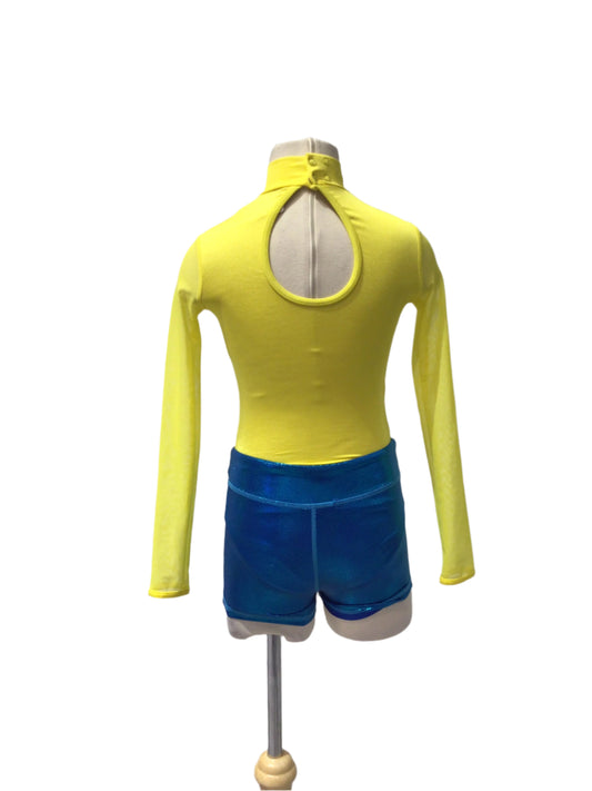 Yellow Long Sleeve Bodysuit with Blue Shorts