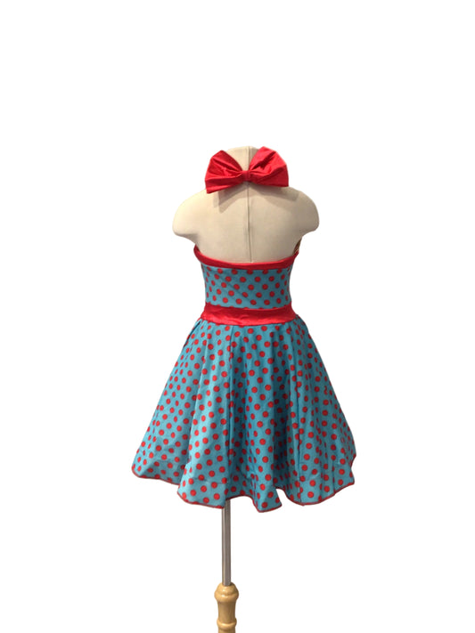 Blue and Red Polka Dot Halter Dress