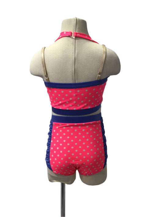 Fluorescent Pink Polka Dot 50s Bathing Suit
