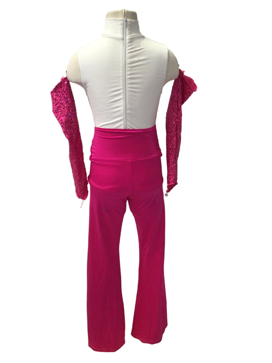 Bright Pink Jazz with Rainbow sequins and Fringe Skirt