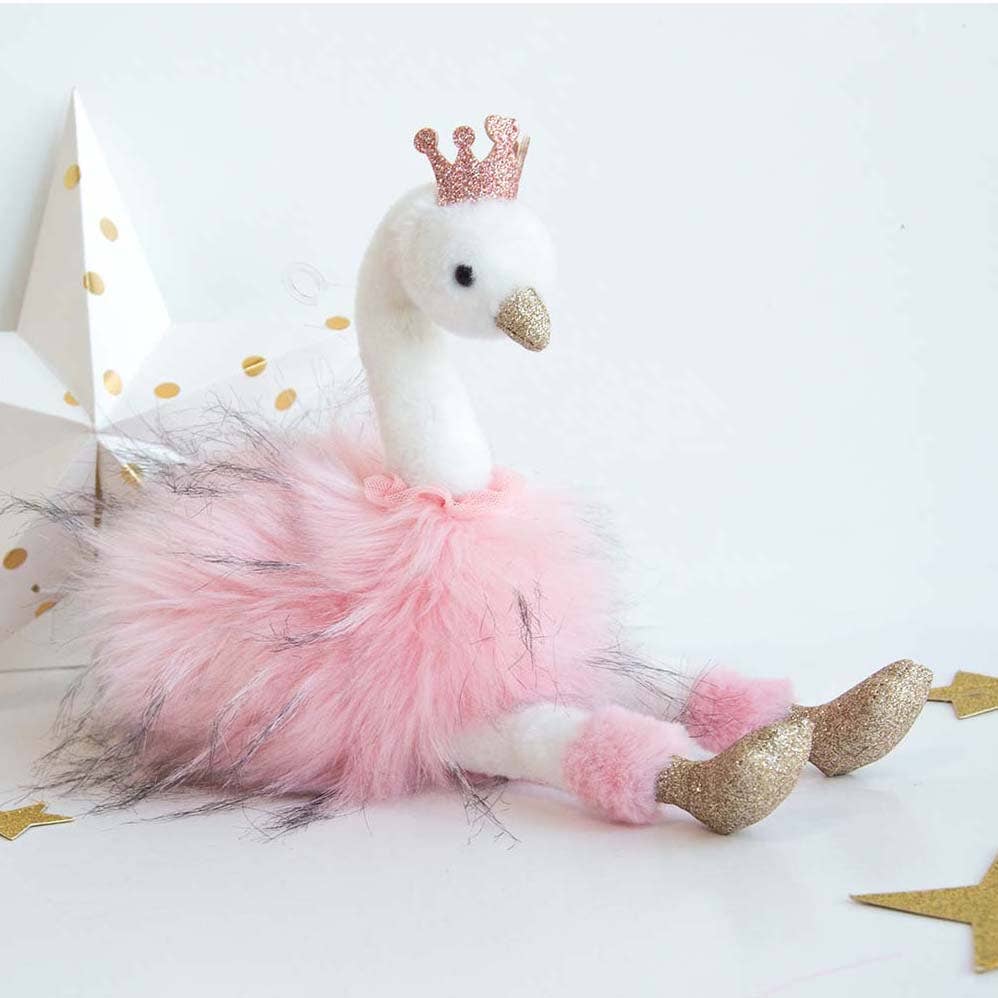 Histoire D'ours Pink Swan has a pink fur body and ankle trim and gold glitter feet and beak topped off with a pink glitter crown. Histoire d’Ours is French company Dou Dou et Compagnie’s high-quality brand specializing in unique plush that evokes a gentle world of dreams and joyfulness. Soft and glittery plush that are unique, tender and magical. 11" tall