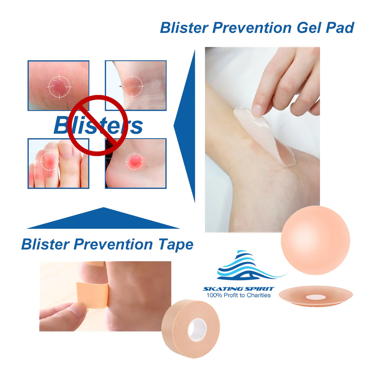 Our package is perfect to help cushion and protect your skin from blisters, corns, calluses, chafing, hotspots, and irritation caused by walking or participating in any physical sport. Great for use with any shoes or boots, especially skates. This kit helps the skater break in the new skates quicker, and with less pain!