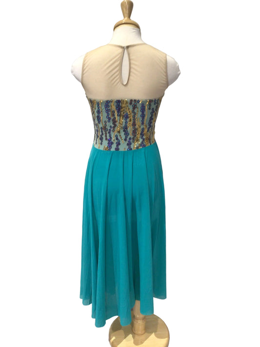 Long Teal Lyrical Dress with Sequins
