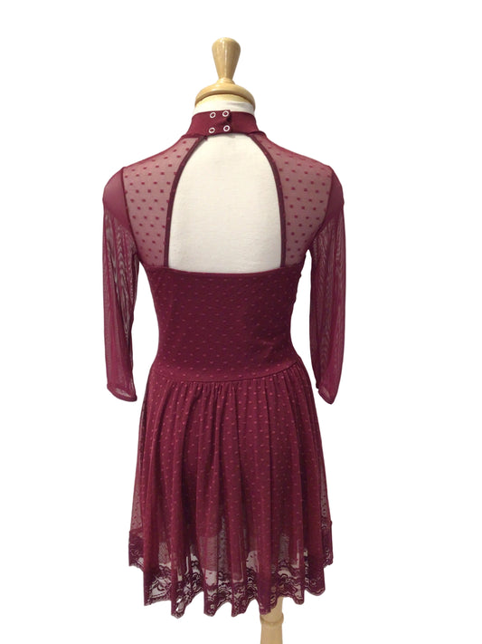 Burgundy Lace 3/4 Length Sleeve Dress