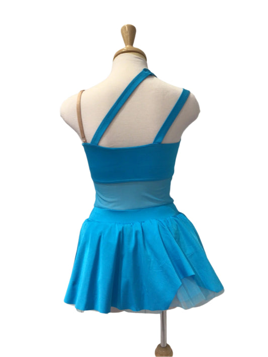 Blue Velvet Halter Bodysuit with Fringe Skirt