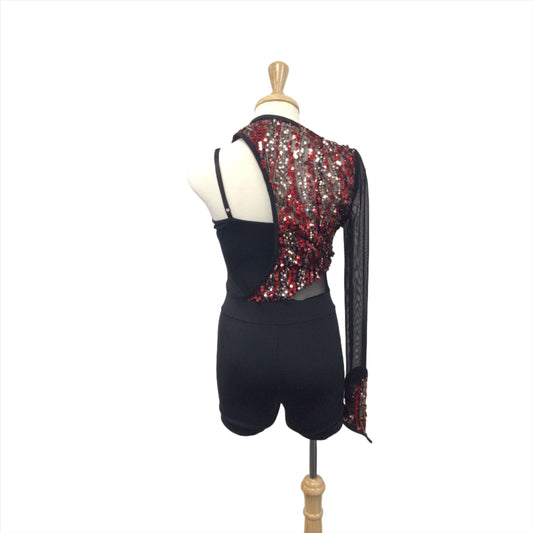 Red Sequin One Sleeve Biketard