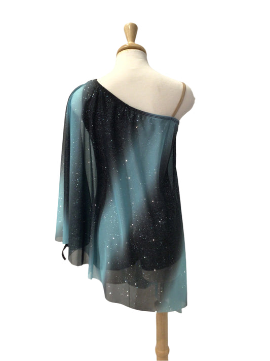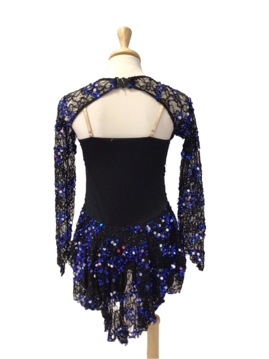 Black and Blue Sequin Biketard with One Sleeve