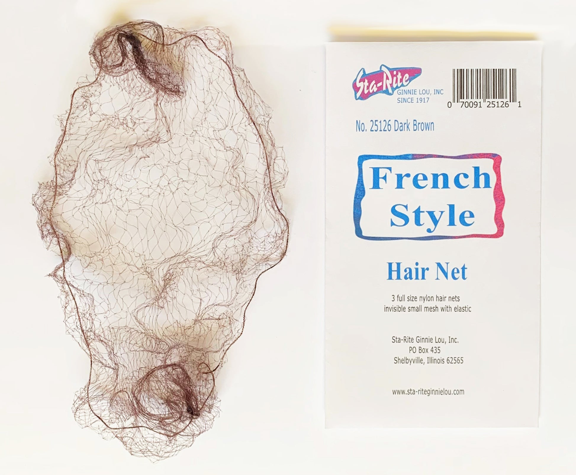 Black, dark brown, medium brown, light brown, blonde colored hair nets. Typically used for a classical ballet bun but is suitable for many different types of hairstyles. Three nets in each package.