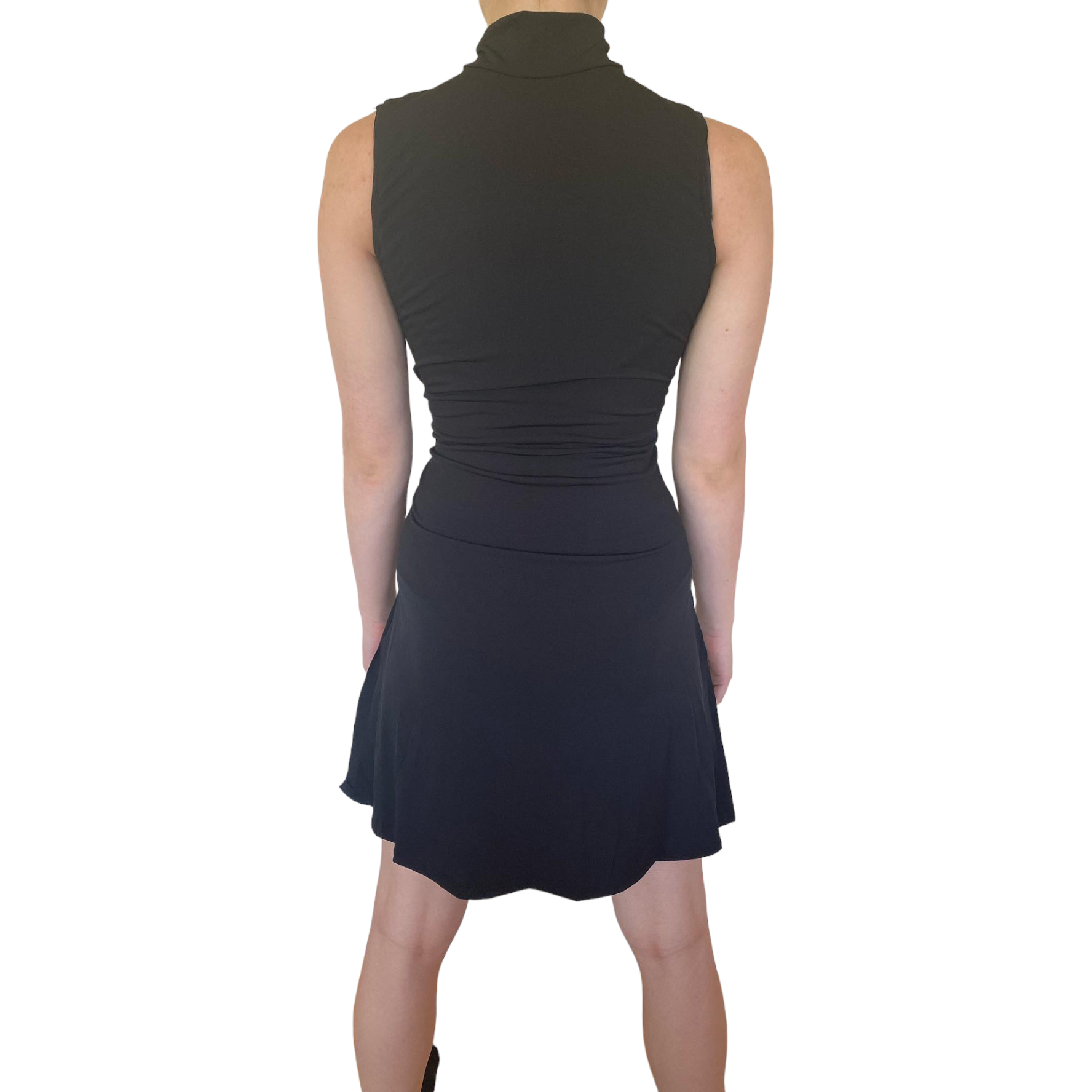 This dress is loose and flowy, super easy to dance in. With a mock neck and sleeveless design it is flattering and comfortable. Material is very stretchy and two straps around the waist can be styled many different ways. To accentuate the waist the straps can be tied at either the front or the back. Both sides feature a slit so it is easy to move in this costume.